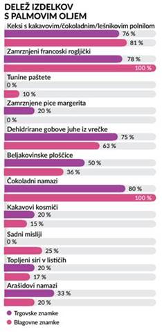 Raziskava Zveze potrošnikov Slovenije je pokazala, da palmovo olje najdemo v številnih izdelčnih skupinah, tudi v izdelkih, v katerih ga običajno ne pričakujemo.
