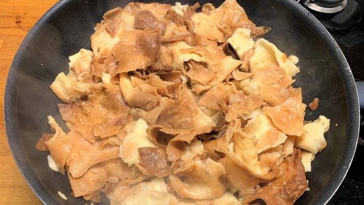 Mlince prelijemo z vrelo vodo dve, tri minute, nato odcedimo. V ponvi segrejemo maslo in dodamo rjav sok od pečene race. Dodamo mlince in premešamo, da se prepojijo z okusom.