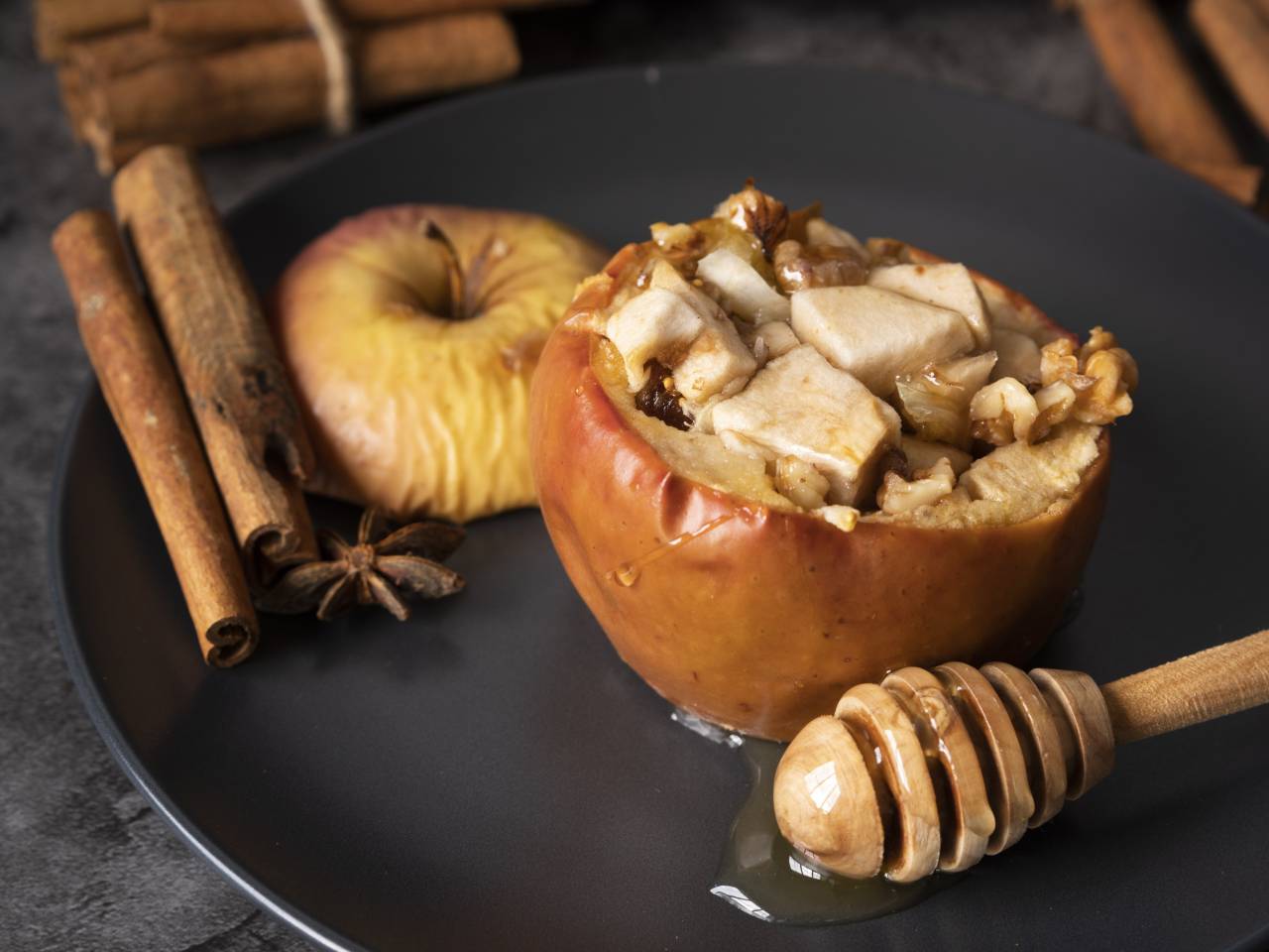 Jabolka olupimo, odstranimo sredico in jih rahlo izdolbemo. V notranjost jabolk dodamo mešanico medu, oreščkov in cimeta. Na vrh vsakega jabolka položimo košček masla.