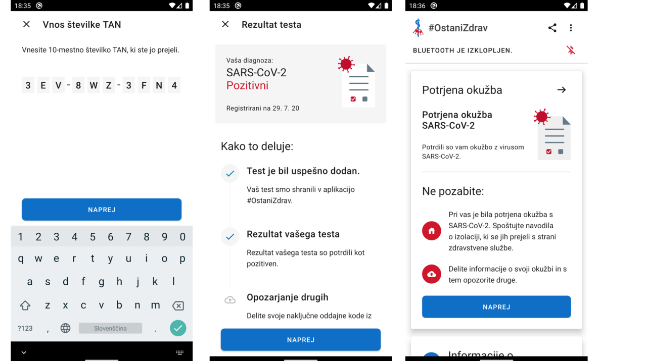 • Poleg te kode se beleži še čas trajanja srečanja in oddaljenost med telefonoma, nikoli lokacija srečanja in ime uporabnika.