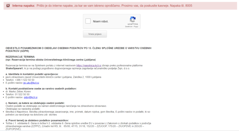 Skratka, nekaj časa je preteklo, zahtevana polja so izpolnjena, ostane le še potrditev, da obrazca ni izpolnil robot in klik na gumb za vnos prijave.