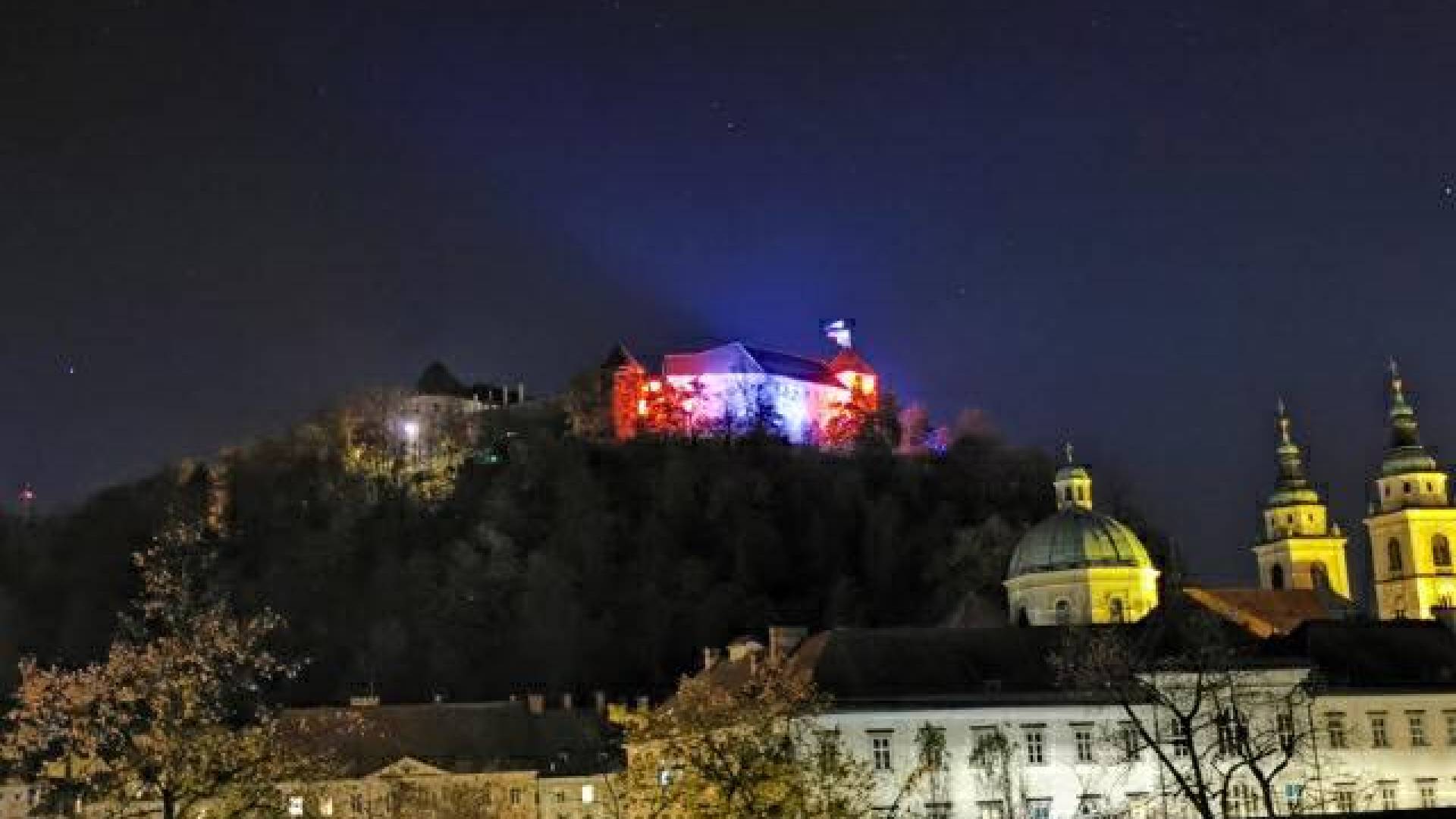 Po terorističnem napadu v središču Dunaja, ki je terjal štiri smrtne žrtve, je v znak podpore severnim sosedom Ljubljanski grad zasijal v barvah avstrijske zastave.