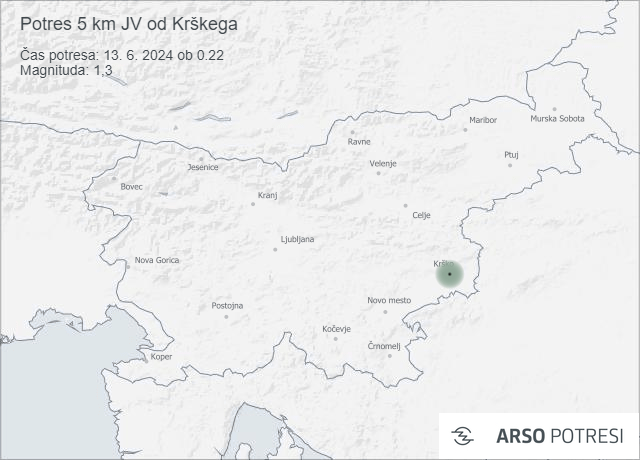 Seizmografi državne mreže potresnih opazovalnic so danes ponoči ob 0.22 zabeležili šibek potresni sunek, magnitude 1,3.