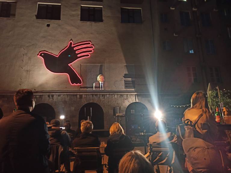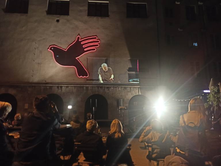 »Obljubili smo, da se vrnemo na dan zmage, 9. maja, in vrnili smo se,« se je glasil njegov uvodni pozdrav, ki so ga lahko gledalci spremljali v dvorani v živo, preko projekcije na fasadi Mladinskega gledališča ali preko prenosa na Youtubu in Facebooku.