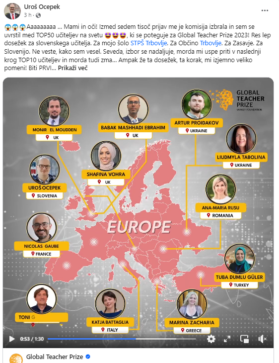 V sklopu izbora Global Teacher Prize vsako leto iščejo najboljšega učitelja na svetu. Med 50 najboljšimi letos tudi slovenski učitelj Uroš Ocepek.