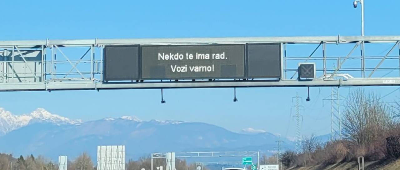 Na tablah, ki služijo različnim opozorilom in pozivom, so se pojavili napisi: »Nekdo te ima rad. Vozi varno!«, »S tabo je svet lepši. Vozi previdno!« in »Ljubezen nima omejitve, hitrost vožnje jo ima.«