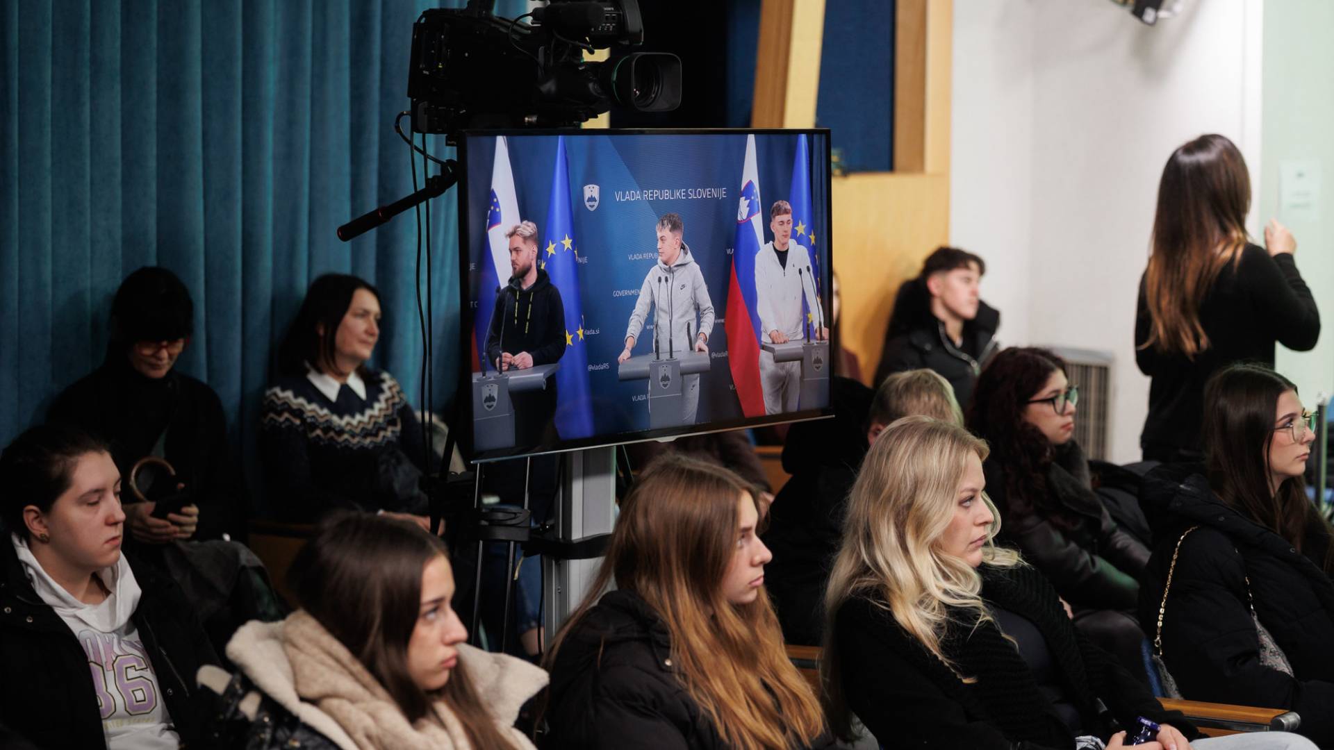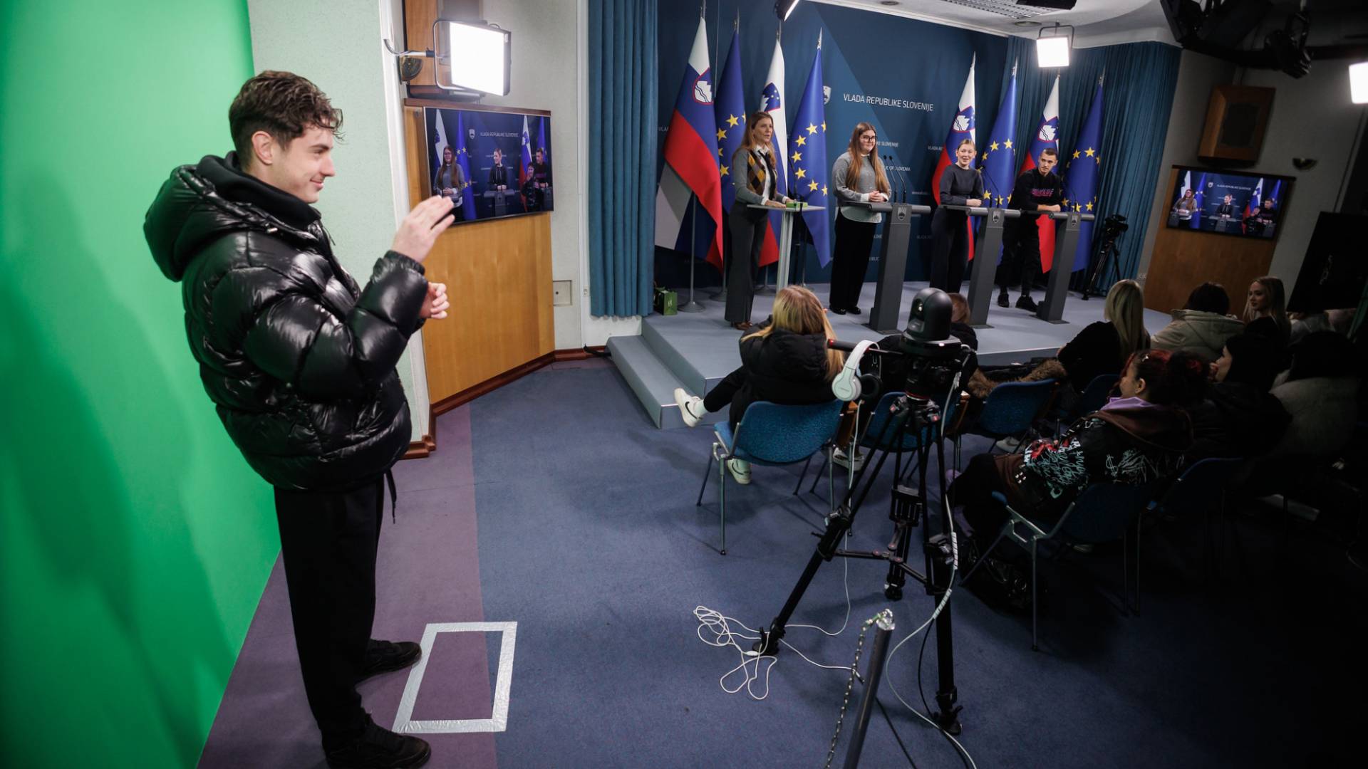 Z dijaki so izvedli tudi simulacijo vladne novinarske konference, tako da so se lahko preizkusili v vlogi govorcev, novinarjev in tolmača v znakovni jezik.