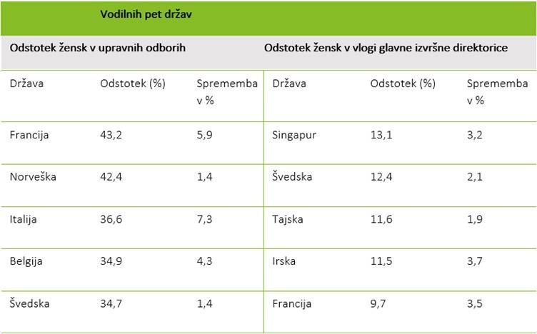 Čeprav se je globalna zastopanost žensk v upravnih odborih leta 2021 nekoliko povečala, je rast števila predsednic in glavnih izvršnih direktoric manj opazna, kar nakazuje na to, da večji odstotek žensk v upravnih odborih še ne pomeni nujno tudi večjega odstotka žensk na vseh vodilnih pozicijah.