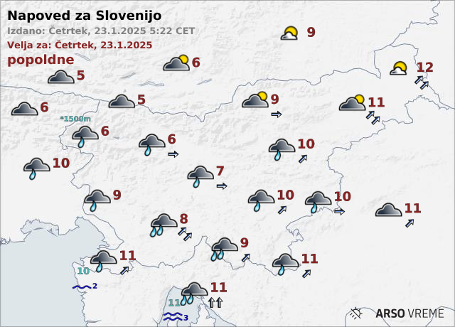 Zaradi vpliva jugozahodnega vetra so se jutranje temperature ponekod v osrednji in zahodni Sloveniji dvignile, hkrati pa je ob gorskih pregradah na zahodu začelo deževati.
