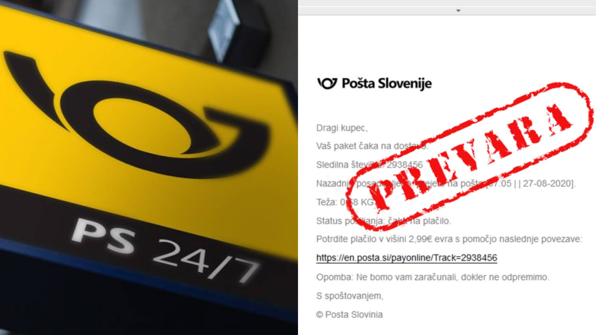 "Če ste na povezavi vnesli podatke o svoji plačilni kartici, čim prej kontaktirajte svojo banko in povejte, kaj se je zgodilo. Uporabnikom naših storitev svetujemo, da preverijo pošiljateljev elektronski naslov, praviloma sporočila niso poslana z domene posta.si," poudarjajo v družbi Pošta Slovenije.