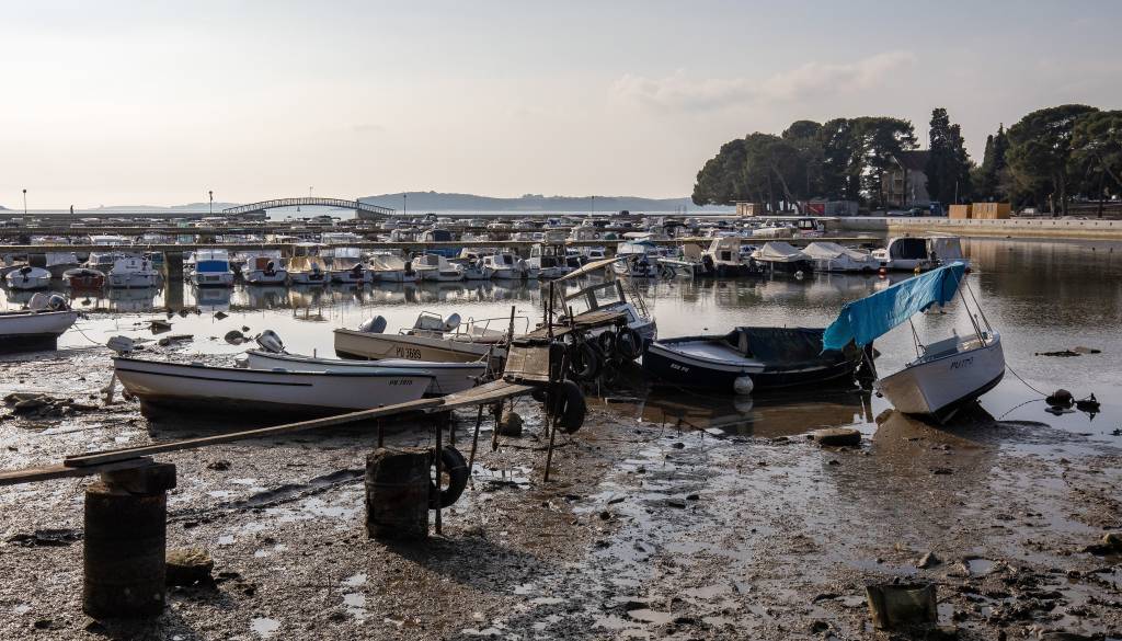 O izjemno nizki morski gladini že nekaj dni poročajo tudi iz drugih delov Jadrana. V Benetkah po nekaterih kanalih gondole in druga plovila sploh ne morejo pluti, številna so obtičala v blatu.
