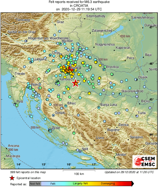 Ob 12.19 so seizmografi državne mreže potresnih opazovalnic zabeležili zelo močan potres na Hrvaškem, 149 km jugovzhodno od Ljubljane. Po preliminarnih podatkih evropsko-sredozemskega seizmološkega centra (ESMC) je imel magnitudo 6,1.
