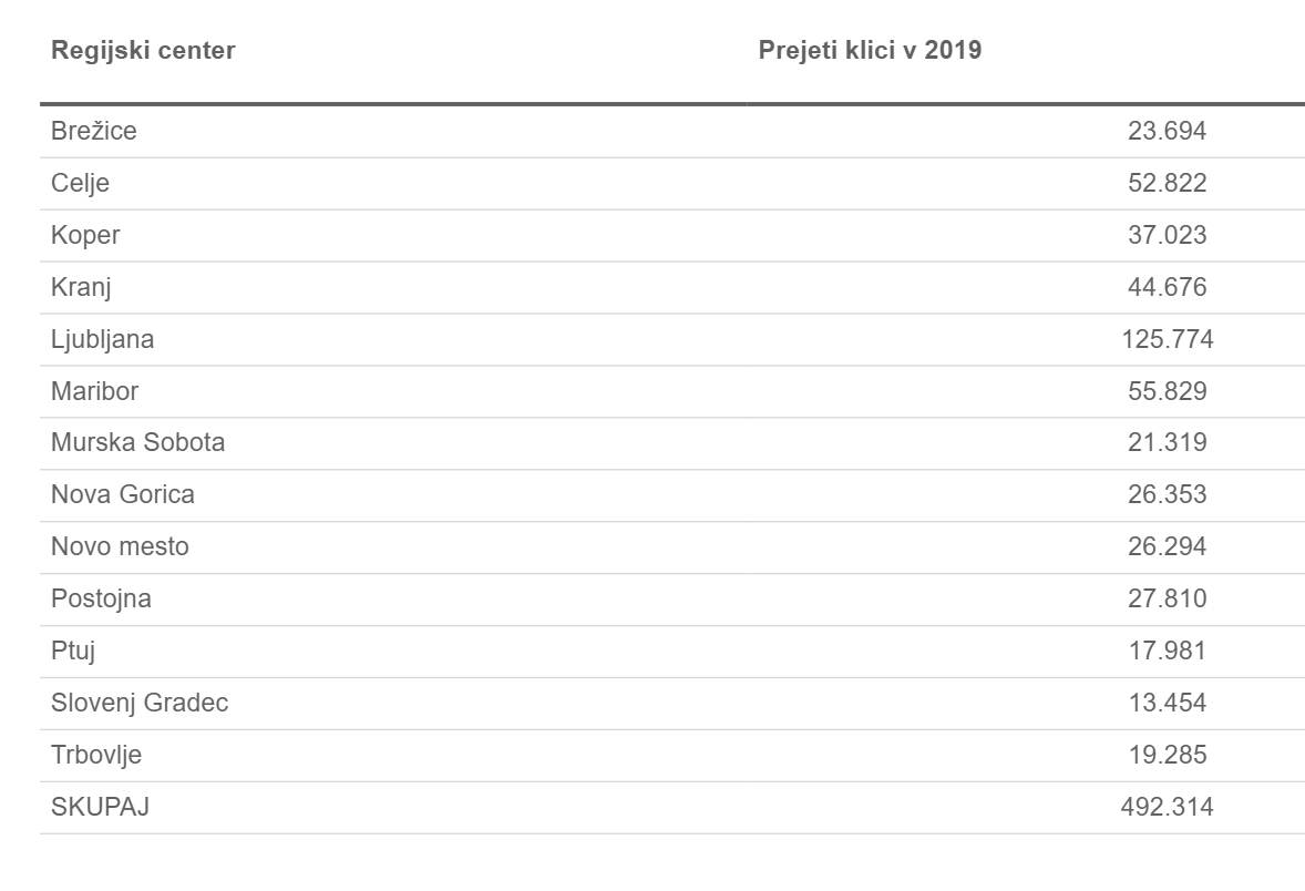 Največ telefonskih klicev so lani prejeli na dan 7. julija, in sicer 3478 . Največje število klicev v eni uri pa je bilo od 15. do 16. ure, znašalo je 923.