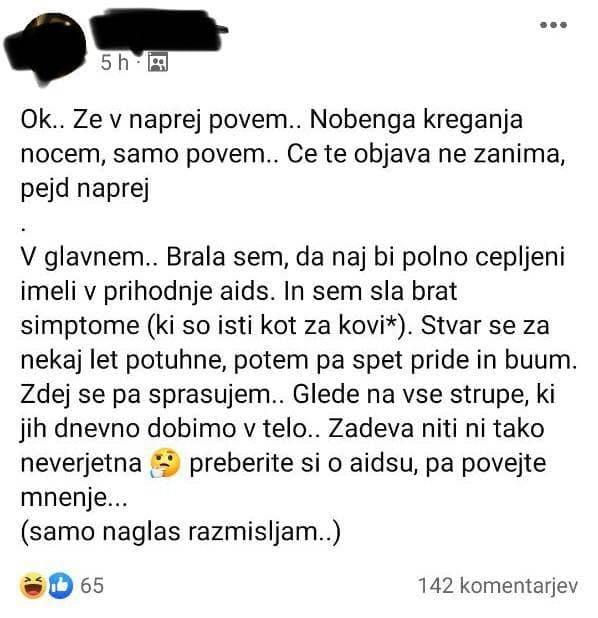 Na družbenem omrežju Facebook je prišlo do resne debate o povezavi cepljenja proti koronavirusu s kasnejšim pojavom AIDS.