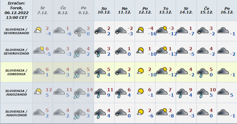 »V prvi polovici naslednjega tedna se bodo temperature po nižinah ob delno jasnih nočeh in morebitni snežni odeji predvidoma lahko spustile tudi krepko pod ničlo,« še napovedujejo.