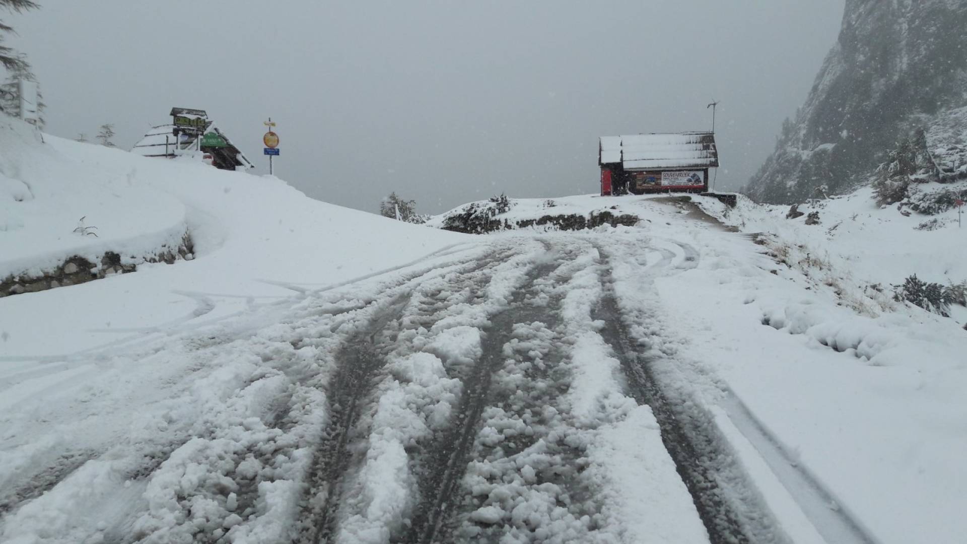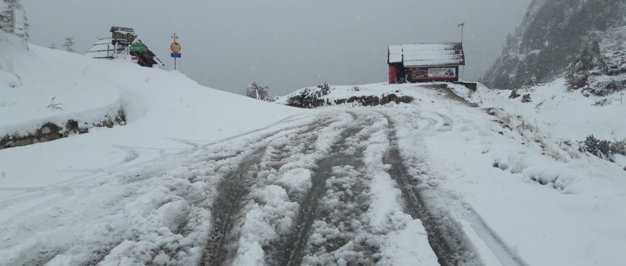 Sneg se že oprijema vozišča, obvezna je zimska oprema. Vzdrževalci bodo izvedli pluženje, kljub temu pa policisti odsvetujejo uporabo gorskega prelaza.
