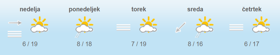 V sredo se bo po bolj oblačnem jutru delno zjasnilo, popoldne bo možna kakšna manjša ploha.