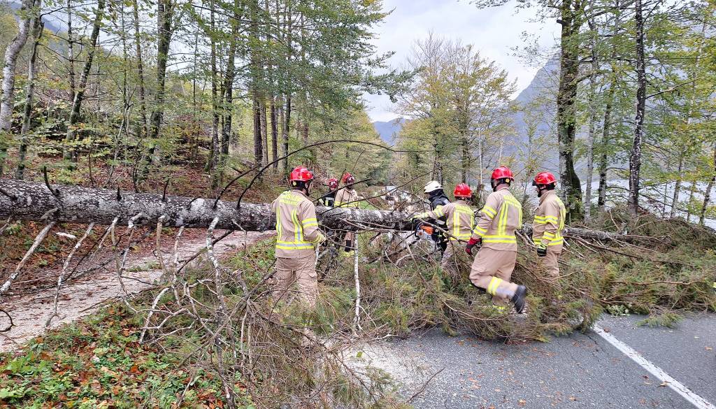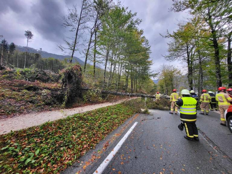 Največ težav so zabeležili na Gorenjskem, kjer sta zaradi podrtih dreves in potencialnih nevarnosti zaprta prelaza Vršič in Korensko sedlo.