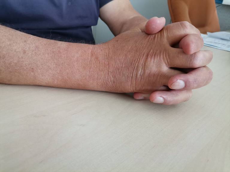 Bila je možganska kap. Takrat ga je v obravnavo vzel fizioterapevt, ki mu je pomagal pri razgibavanju. Medtem so se zdravniki odločili, da bodo težavo z roko poskušali odpraviti z električnimi šoki.