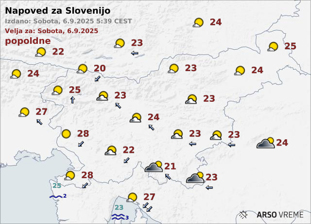 Na Primorskem bo sončno s šibko burjo. Drugod bo sprva pretežno oblačno, čez dan se bo postopno jasnilo. Najvišje dnevne temperature bodo od 20 do 25, na Goriškem in v Slovenski Istri okoli 28 stopinj Celzija.