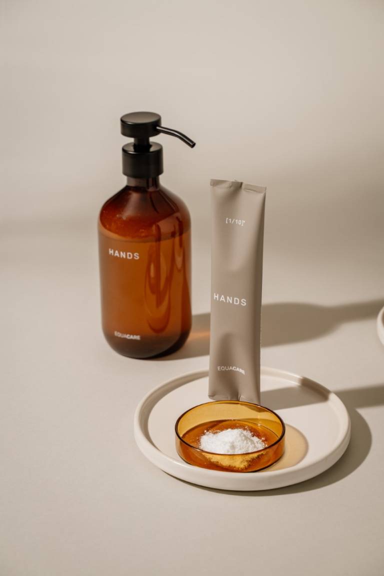 Res je, poleti smo na trg lansirali trajnostne izdelke za nego telesa in doma pod popolnoma novo blagovno znamko EQUA Care. Večina tradicionalnih izdelkov za nego telesa in doma vsebuje le eno desetino aktivnih sestavin, vse ostalo pa je voda, ki je dodana do prostornine embalaže in povečuje ogljični odtis med prevozom, s čimer še bolj onesnažujemo okolje. Glavna ideja EQUA CARE izdelkov so premium naravne aktivne sestavine v prahu, ki jih uporabnik zmeša z vodo iz pipe v dispenzerju za večkratno uporabo. Tako poskrbimo za enako učinkovitost, boljšo kvaliteto in manj odpadkov.