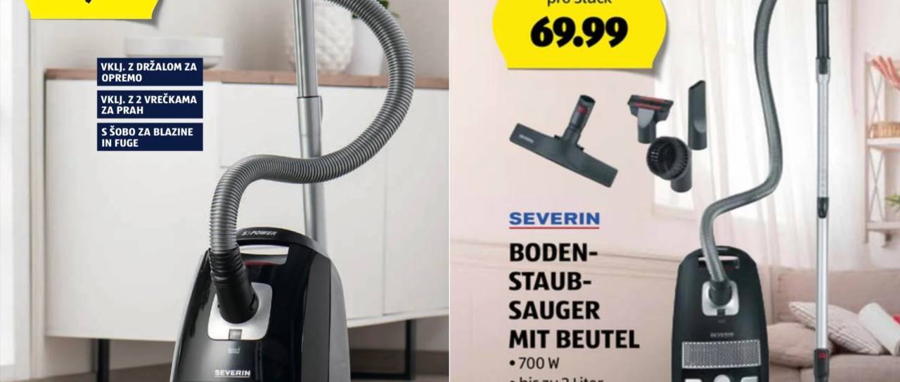 Na obeh je prikazan enak sesalnik podjetja Severin, vendar z občutno razliko v ceni. Medtem ko je v Sloveniji na voljo za 99,99 evra, je v Avstriji cena istega izdelka le 69,99 evra. Poleg tega ima sesalnik pri nas dvoletno garancijo, pri sosedih pa triletno garancijo.