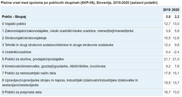 Plačna vrzel med moškimi in ženskami v Sloveniji je v letu 2020 po začasnih podatkih iz strukturne statistike plač znašala 2,2 odstotka, kar je bilo za 3,6 odstotne točke manj kot v letu 2019.