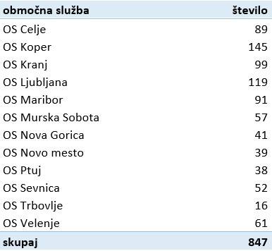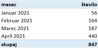 Prosta delovna mesta za natakarje, ki so jih delodajalci sporočili Zavodu Republike Slovenije za zaposlovanje, v obdobju januar - april 2021 po območnih službah sporočili Zavoda Republike Slovenije za zaposlovanje: