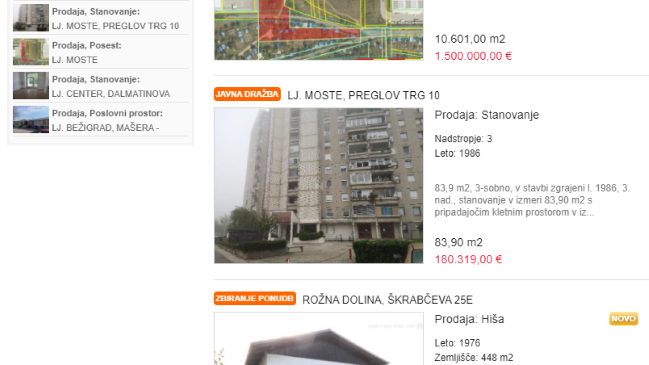 Do konca oktobra bo na javnih dražbah na voljo več nepremičnin, in sicer stanovanja, hiša ter zemljišča v Ljubljani.