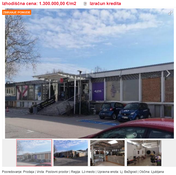Izhodiščna cena: 1.300.000,00 EUR/m2