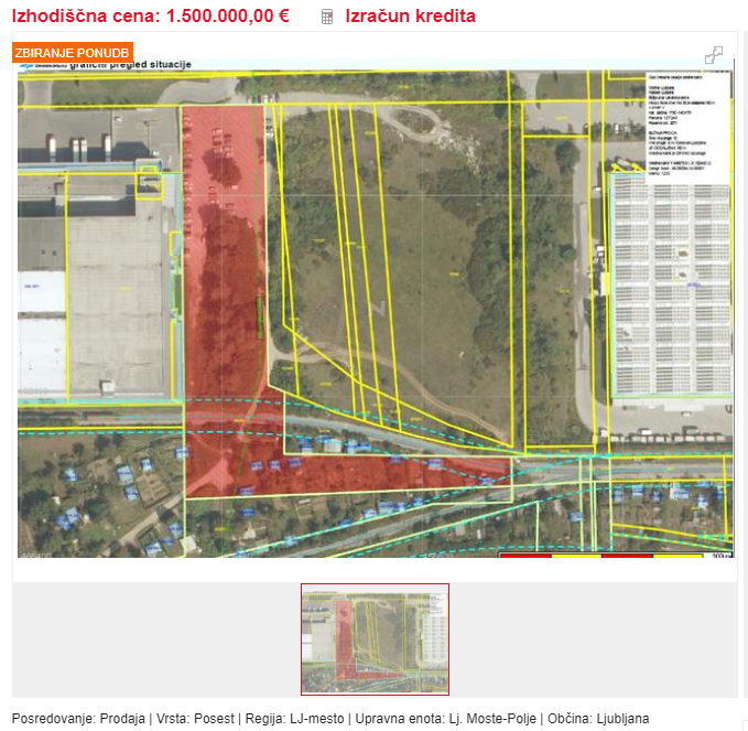 Izhodiščna vrednost: 1.500.000,00 EUR, brez davka.