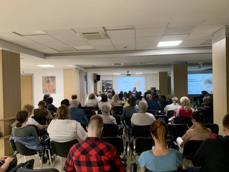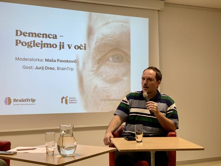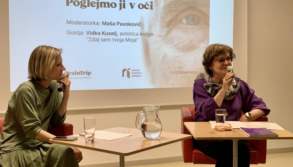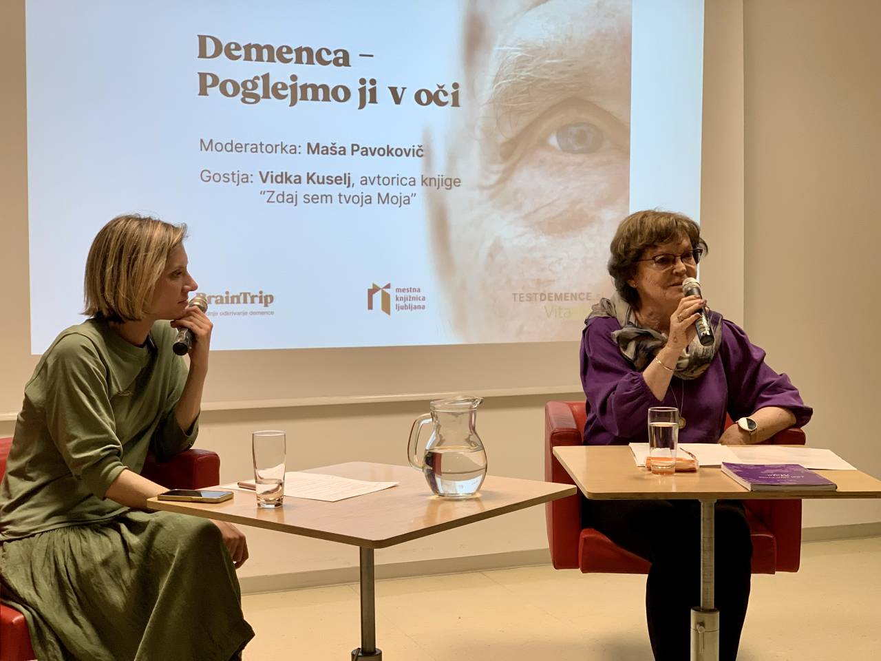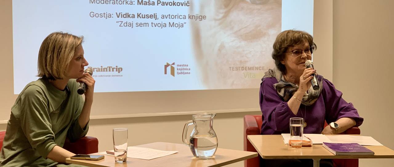 V ponedeljek je v knjižnici Otona Župančiča potekal pogovor na temo demence z gostoma. Jurij Dreo, nevroznanstvenik, je spregovoril o vzrokih za nastanek demence in težavah pri njenem odkrivanju in zdravljenju, v drugem delu pogovora pa je Maša Pavokovič gostila tudi Vidko Kuselj, avtorico avtobiografske izpovedi Zdaj sem tvoja Moja, ki spregovori o izkušnji svojca dementne osebe.