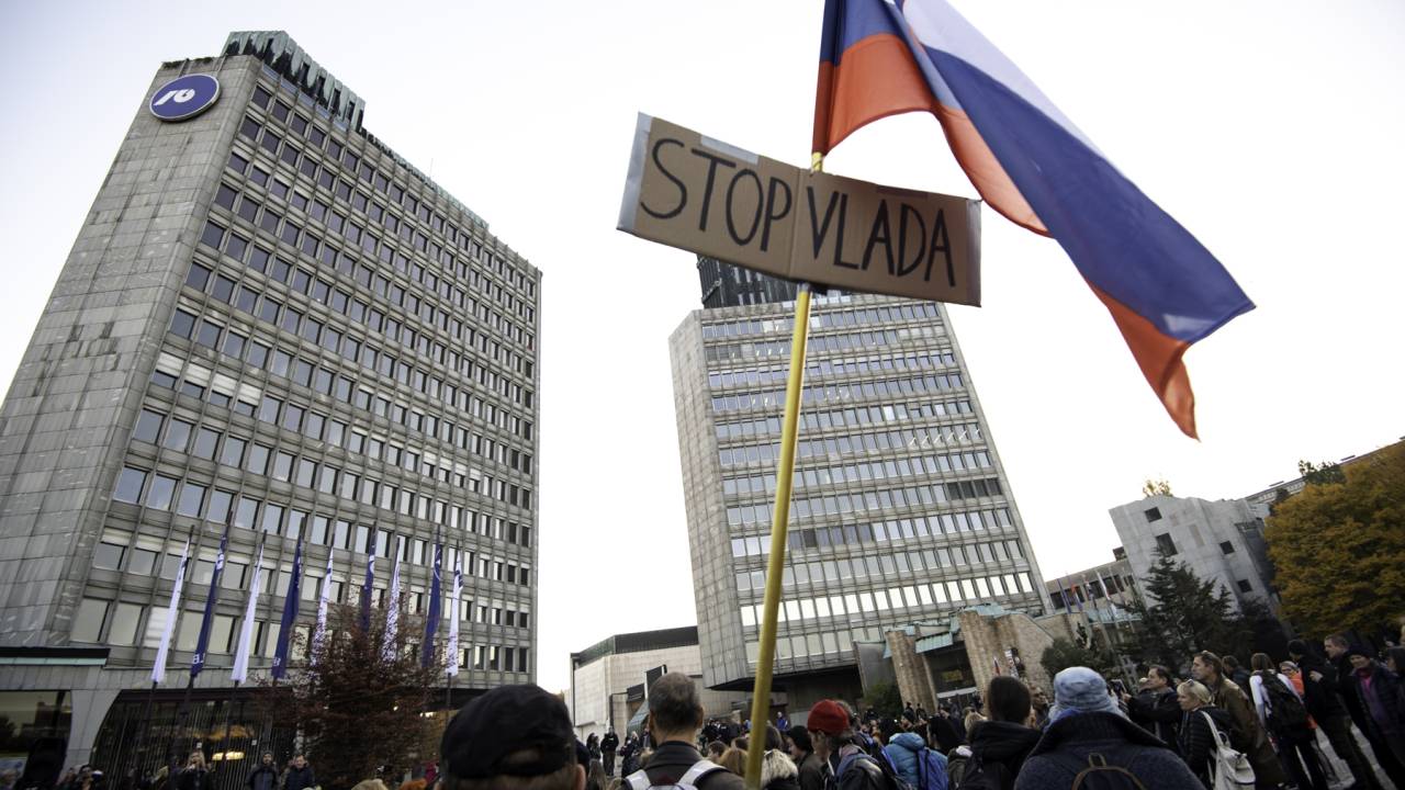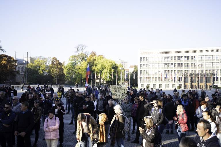 Policisti so ocenili, da se je na Trgu svobode zbralo okoli 50 protestnikov.