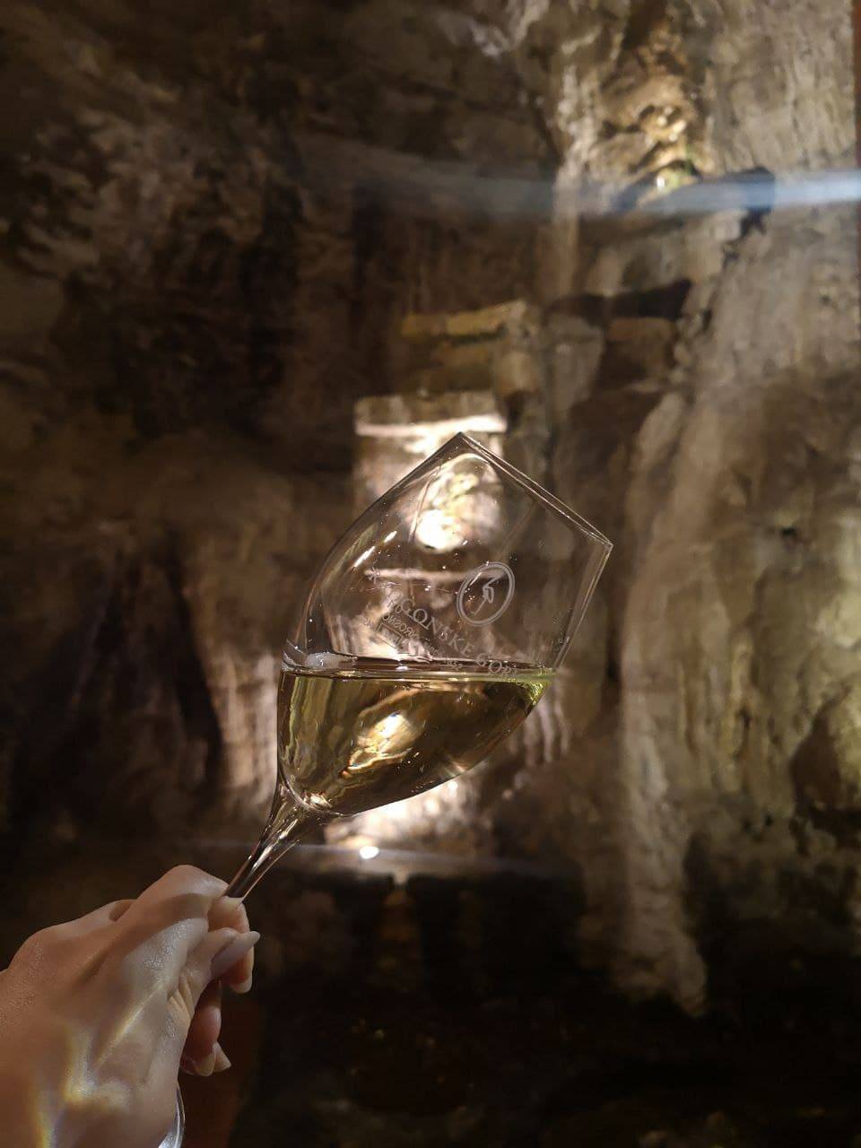 Najprej popelje v klet, kjer spoznamo delček postopka pridelave penine. Steklenice, obrnjene navzdol, zapolnijo vsak delček hladne kleti, mi pa prisluhnemo zgodbi.