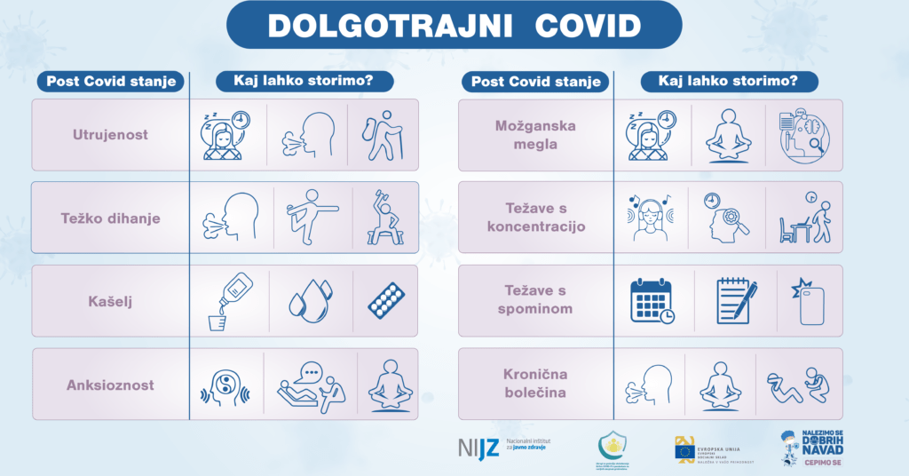 Za vse odrasle osebe, ki se soočajo s post covidnim stanjem, pa je priporočljiva tudi udeležba delavnic v zdravstvenovzgojnih centrih ali centrih za krepitev zdravja.