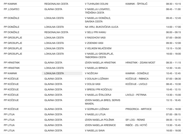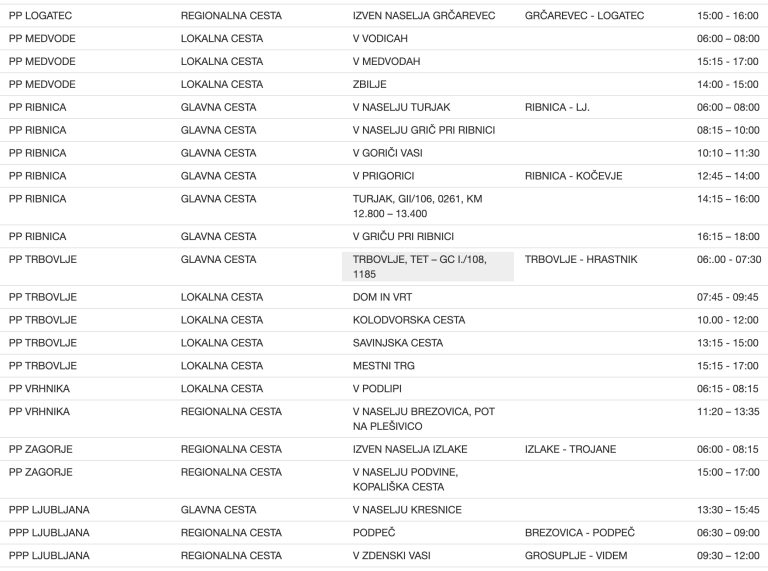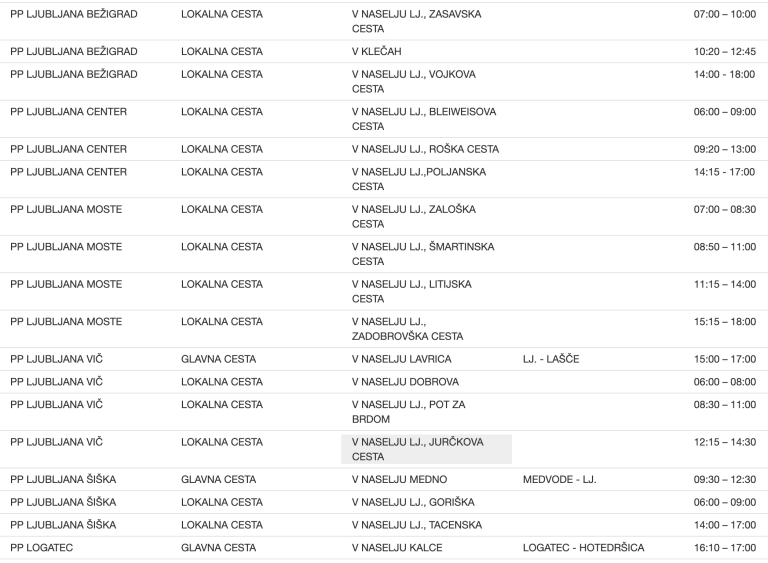 To so vse lokacije meritev na območju Policijske uprave Ljubljana ...