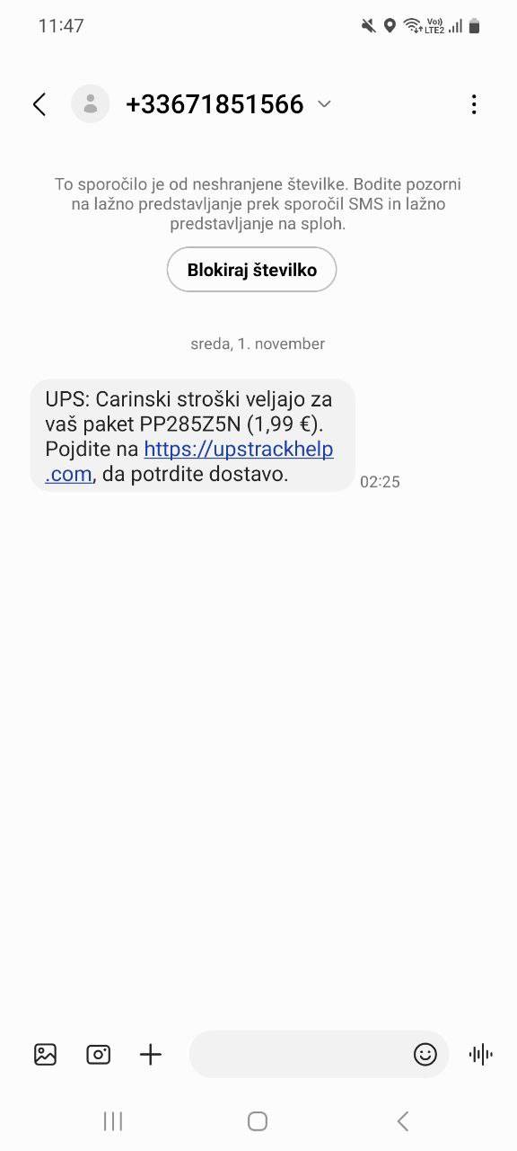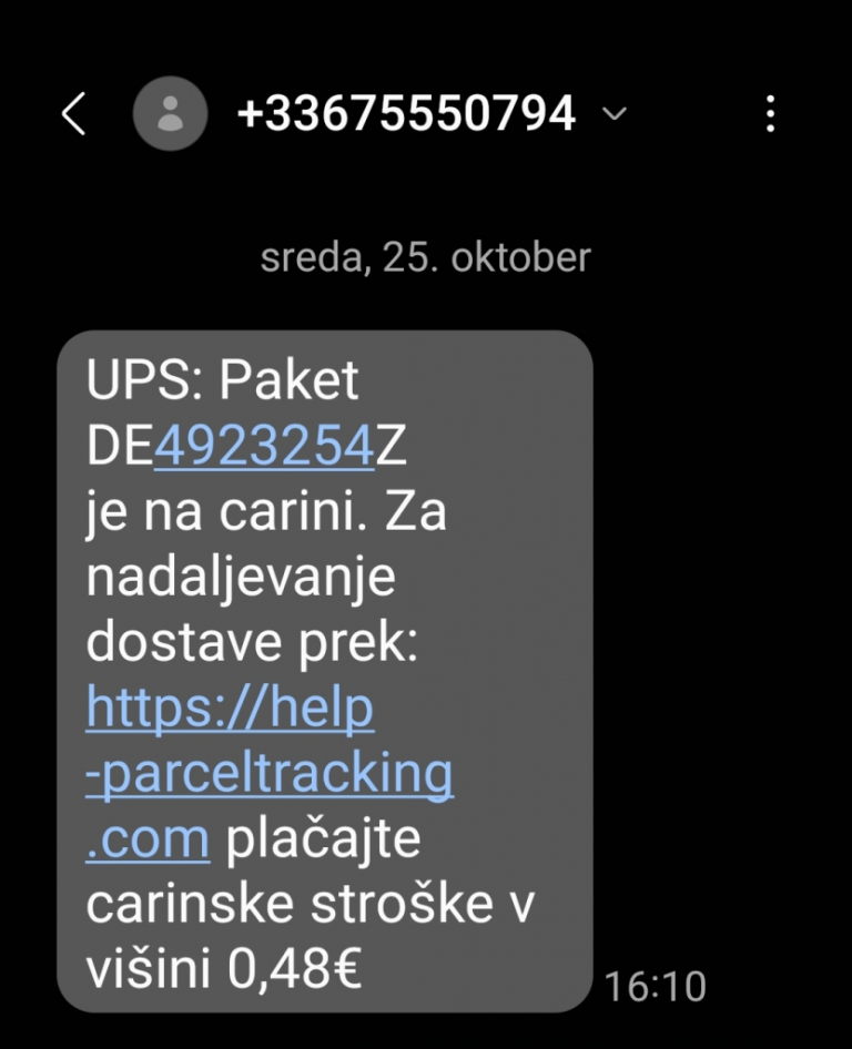 Dostavna podjetja namreč nikoli ne zahtevajo vnosa kreditne kartice na svojih spletnih straneh. V SMS-sporočilih, namenjenih obveščanju o dostavi paketa, logistična podjetja nikoli ne bodo preusmerjala na spletno stran, kjer naj bi vnesli podatke kreditne kartice.