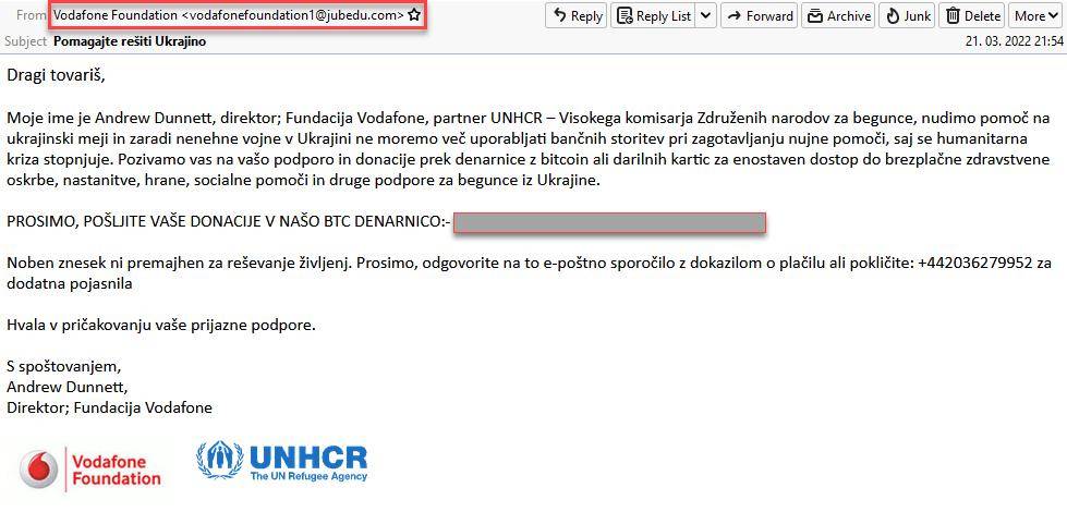 Če ste zasledili elektronsko pošto, kjer vas humanitarne organizacije nagovarjajo na direktno nakazilo denarja, bodite pozorni na elektronski naslov, kjer ni podana domena organizacije.