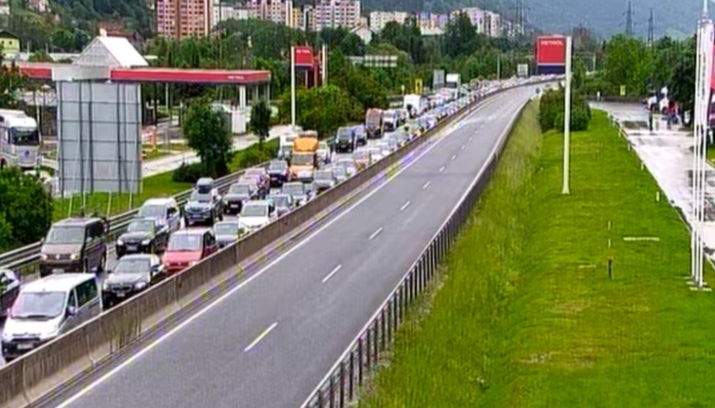 Možnost zastojev je večja zaradi del, ki potekajo na več odsekih avtocestnega križa, promet pa je urejen po zoženih pasovih oz. ob delni zapori posameznih pasov, kažejo podatki prometnoinformacijskega centra.
