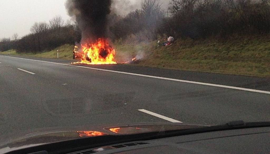 Med priključkoma Vransko in Trojane je zaradi gorečega vozila zaprta štajerska avtocesta.