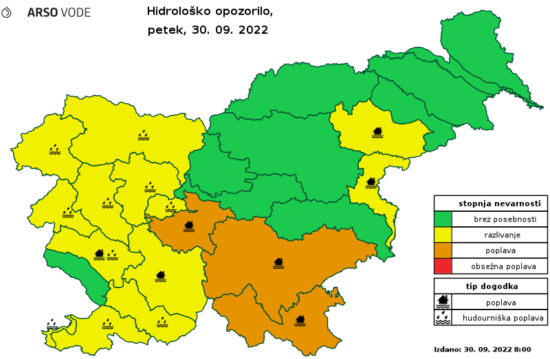 Kot opozarjajo na Upravi Republike Slovenije za zaščito in reševanje, bo v naslednjih 24 urah, predvsem na severozahodu ter v večjem delu osrednje Slovenije, še lahko padlo od 50 do 100 milimetrov, krajevno tudi okoli 200 milimetrov dežja.