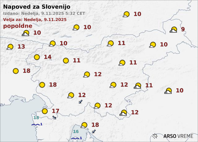 Najvišje dnevne temperature bodo od 9 do 13, na Primorskem do 18 stopinj Celzija.