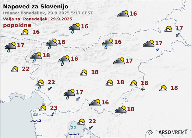 Najvišje dnevne temperature bodo od 16 do 18, na Primorskem do 23 stopinj Celzija.
