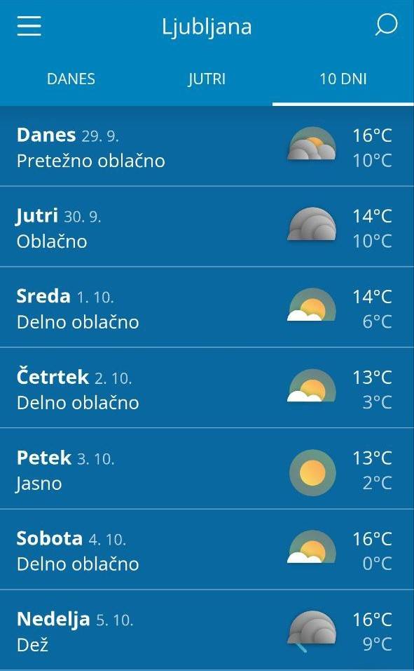 Ponoči se bo od severa pooblačilo, na zahodu bo občasno rahlo deževalo. Jutranje temperature bodo od sedem do deset, na Goriškem in ob morju okoli 13 stopinj Celzija.
