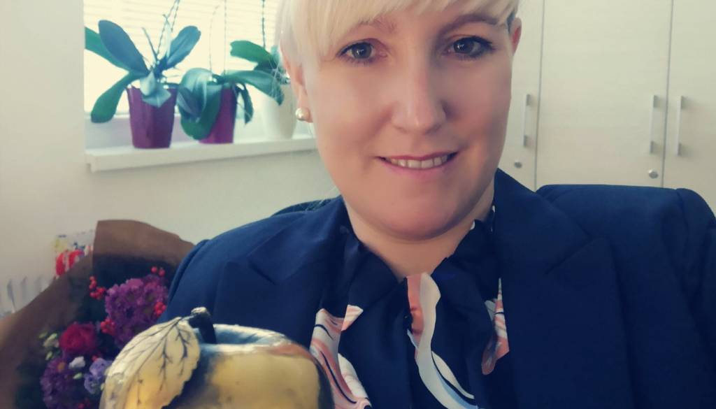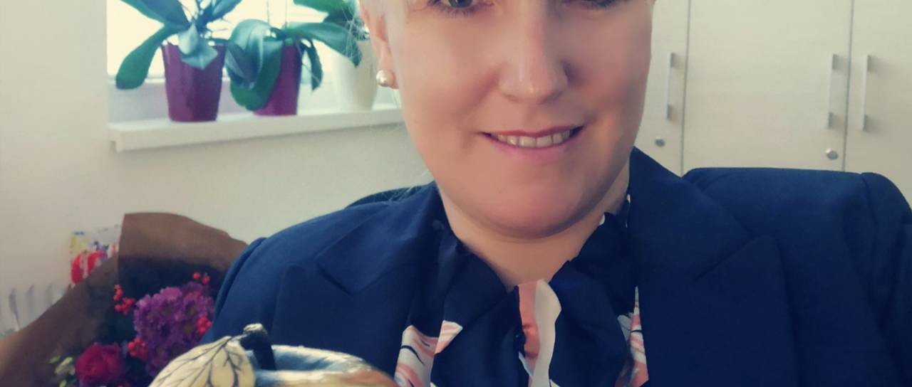 "Jabolko navdiha je pomembno priznanje, poklon ter obveza za naprej. Posebno čast imam, da že 15. leto delam s starostniki. Toliko, kolikor sem se naučila od njih se ne bi mogla naučiti v nobeni šoli. Oni vedo, kaj je v življenju res pomembno; biti spoštljiv, solidaren, iskren, strpen, pravičen in srčen. Niso pomembne materialne reči, pomembni so odnosi, ki jih stkemo med seboj. Zagotovo imamo v Sloveniji ogromno dobrih praks in še več srčnih ljudi, pa vendar si želim, da bi temu področju namenili več pozornost. Želim si, da bi star človek v Sloveniji dobil tisto, za kar si je prizadeval vso svojo delovno dobo - dostojno starost. Zato tako jaz, kot vse moje sodelavke in sodelavci ter mnogi drugi, delamo vse, kar lahko, da bi vsaj malo vplivali na to. Z različnimi projekti želimo navdušiti mlajše, kajti prihodnost je v njihovih rokah. Verjamem vanje, verjamem v vas, verjamem v nas. Te dni v naš center starejših prejemamo neverjetne količine pisem, voščil. 21.000 je naš cilj, za vse starostnike po vseh slovenskih domovih za starejše. Ko prebiramo in beremo te neverjetne in čudovite zapise ugotavljamo, da smo v resnici zelo povezani in to nas vse navdaja z upanjem. Z upanjem, da lahko marsikaj spremenimo na bolje. Vem, da je to mogoče in k temu si bomo prizadevali tudi v bodoče. To jabolko navdiha je za vse moje sodelavke in sodelavce, za upravo družbe DEOS, katera me podpira in daje priložnost vsem, za stanovalce centra in njihove svojce, za mojo družino, katera mi stoji ob strani ter za vse dobre ljudi, ki hočejo spremembe na bolje. Za vse vas! Iskrena hvala vam."