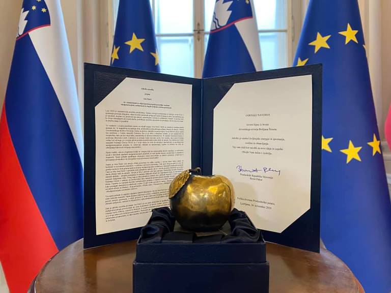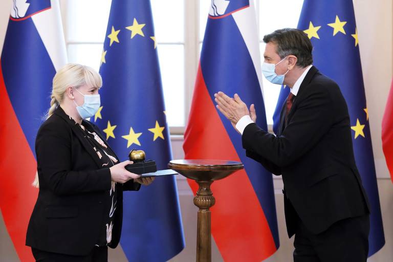 Predsednik Republike Slovenije Borut Pahor je danes v Predsedniški palači vročil priznanje jabolko navdiha Ani Petrič, ki z domiselnimi in vključujočimi projekti pooseblja vrednote medgeneracijske solidarnosti in bogati življenje srebrne generacije.