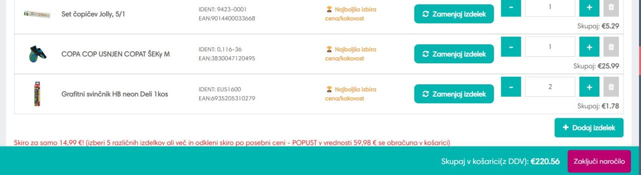 Pri enem ponudniku bi za nakup po seznamu odšteli nekaj več kot 188 evrov, pri drugem pa kar 46 evrov več.