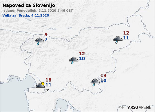 V sredo lahko pričakujemo poslabšanje vremena in nekoliko nižje temperature. V notranjosti Slovenije bo rahlo deževalo, na Primorskem bo zapihala šibka burja.