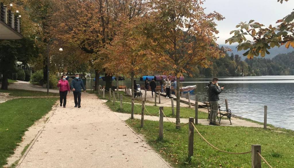 Na ulicah, na avtobusnih postajališčih in sprehodih v naravi je videti, da ljudje upoštevajo nove ukrepe in nosijo zaščitne maske. Opazili pa smo tudi nekaj takih, ki si za sprehod okoli Blejskega jezera niso nadeli maske.