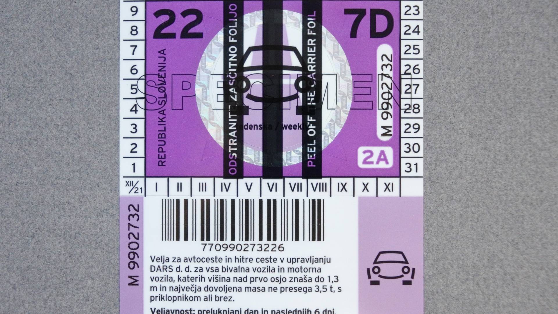 Tedenske in mesečne vinjete do 31. januarja 2022 še naprej uporabljajo v obliki nalepke.